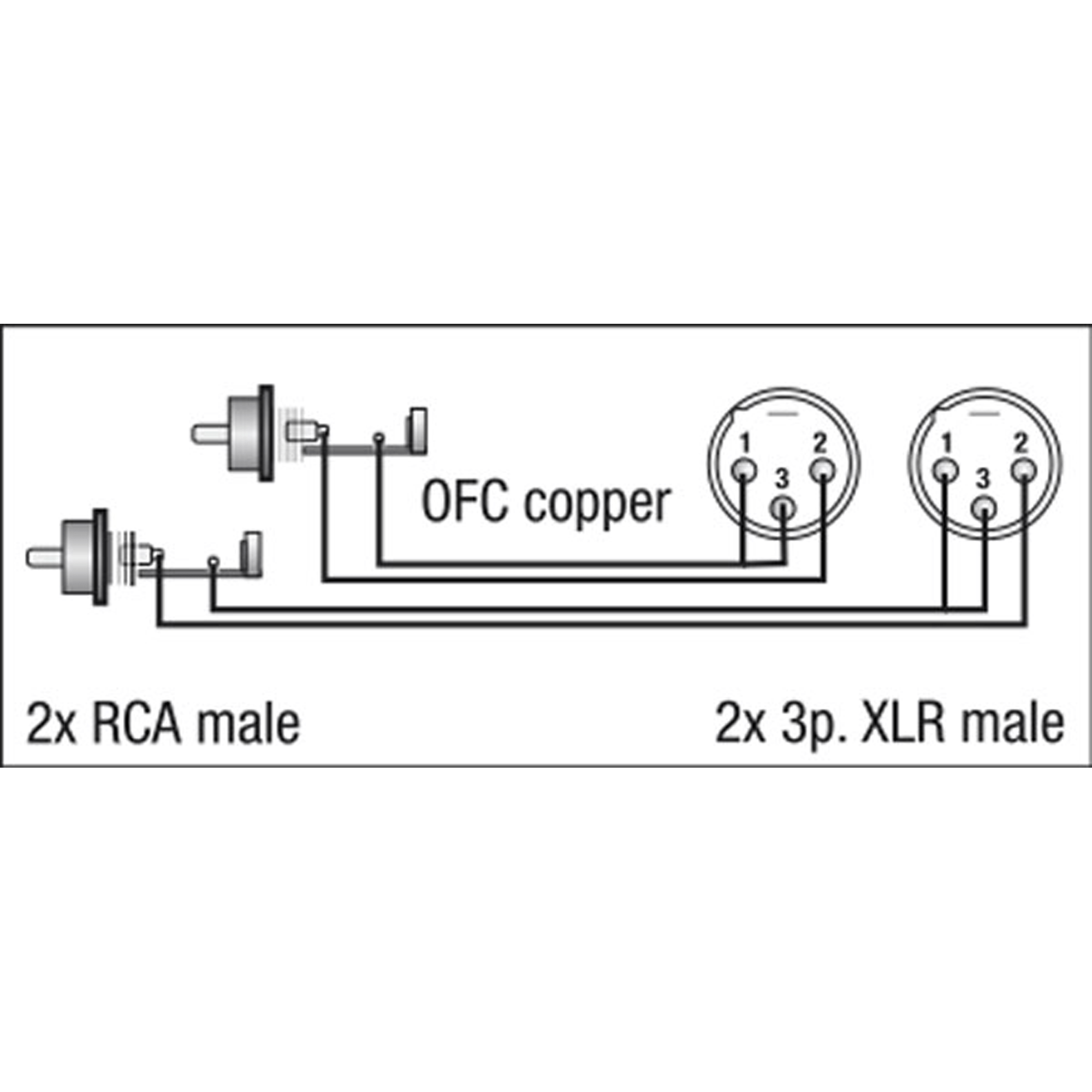 2× RCA (tulp) male L/R naar 2× XLR male (3-polig)