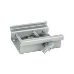 De Tent Clamp is uitgerust met M10, M12 en M14-schroefdraad, waardoor je eenvoudig ophangogen of klemmen kunt monteren en aanpassen aan je specifieke opstelling. Het slanke, zilveren ontwerp maakt de clamp geschikt voor zowel professionele evenementen als tijdelijke installaties.
